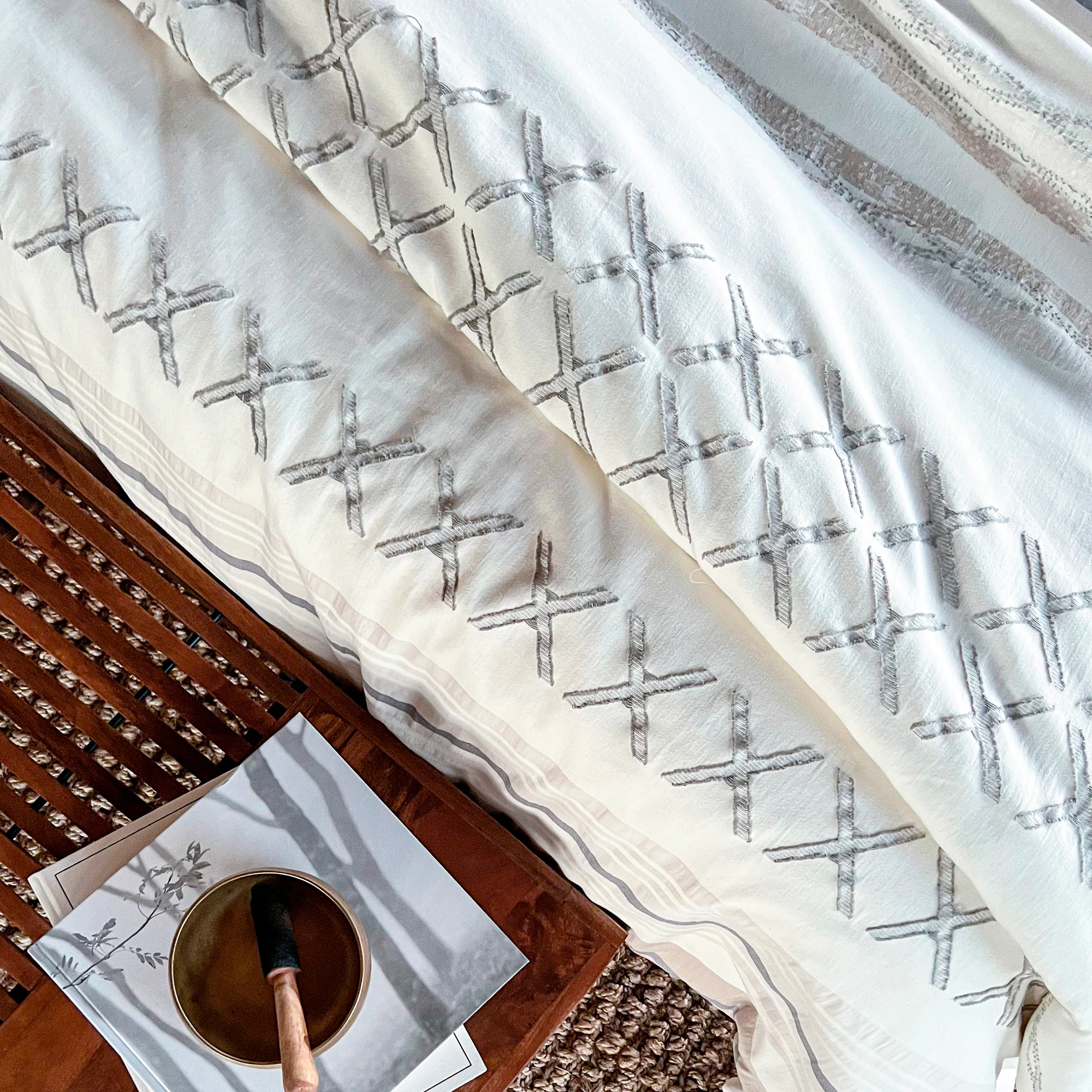 The lightweight, breathable fabric is soft and gentle on skin, making it ideal for year-round comfort. Due to the unique craftsmanship involved in creating each cover, every piece is truly one-of-a-kind with slight variations in pattern positioning—a hallmark of authentic handcraftsmanship.