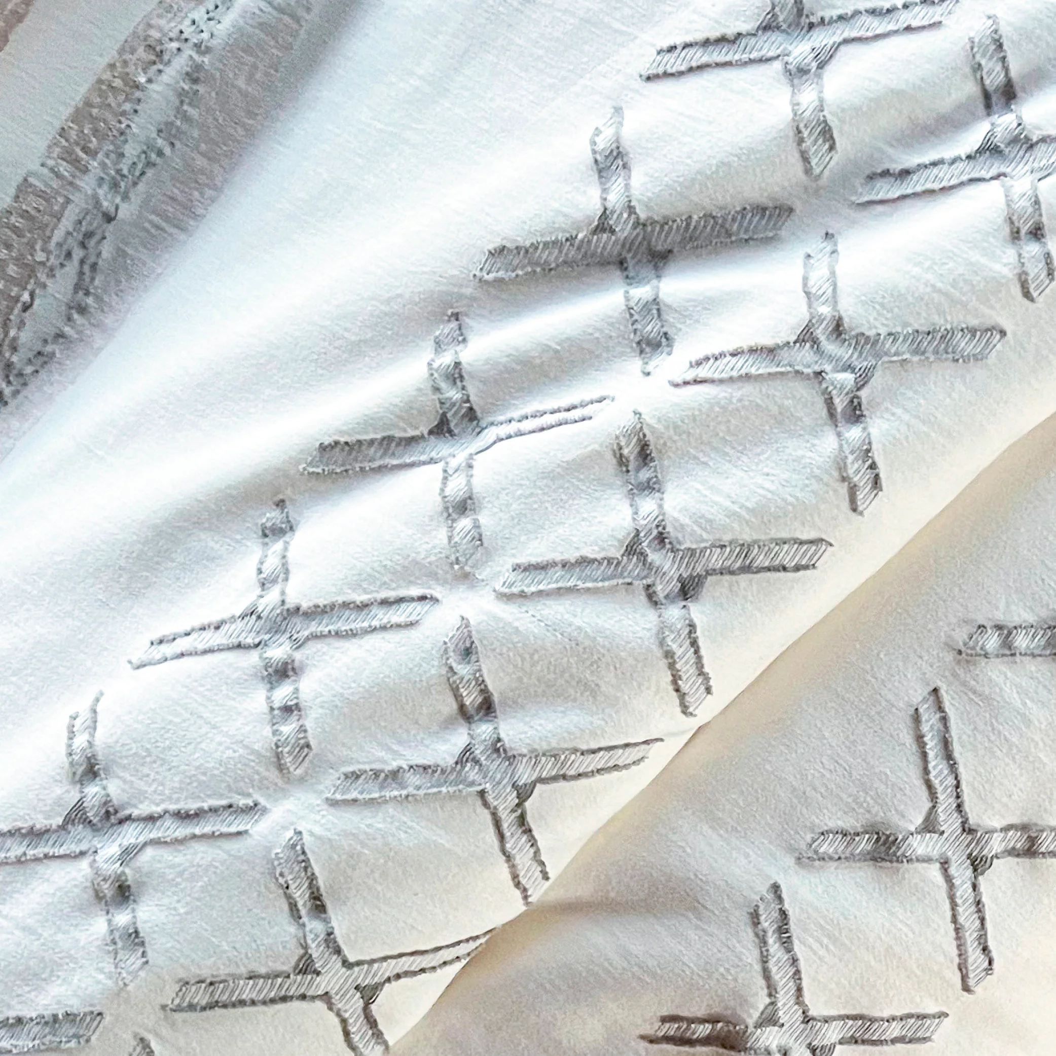 The reversible design features the exclusive pattern on one side and a coordinating solid on the other, providing styling versatility. Made from breathable, yarn-dyed cotton, this cover is soft and comfortable while adding visual interest.