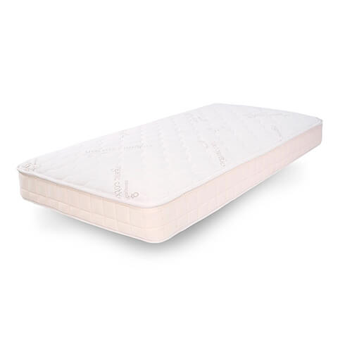 The 2-in-1 Organic Kids Mattress features firm support, ideal for your growing child or teen. The mattress is highly versatile, combining waterproof and quilted sides for an ideal children’s mattress. Use the waterproof side when they first come out of the crib and while they’re training. The waterproof side also functions as a dust-mite barrier and provides excellent backup for when the mattress pad is dislodged, missing, or otherwise unavailable. When the child gets older, flip the mattress over for a more luxurious quilted feel. The 2-in-1 kids mattress is certified organic and is designed without glues, adhesives, flame retardants, or other questionable materials. With its kid-friendly design, your child will be sleeping comfy cozy night after night.